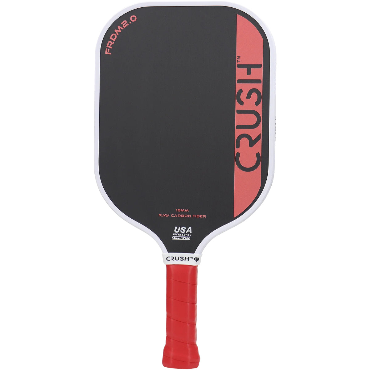 High-Quality pickleball paddle for recreation and competitive-level players; CRUSH FRDM-2 is a 16 mm pickleball paddle featuring raw carbon fiber surface that increases power, spin, and control